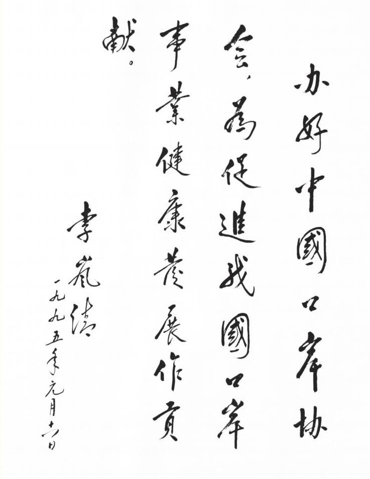 时任中共中央政治局委员、国务院副总理李岚清题词